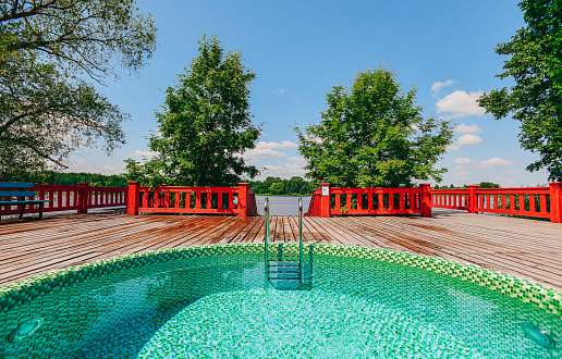 Банный комплекс на берегу реки с традиционной русской баней, финской,турецкой сауной.