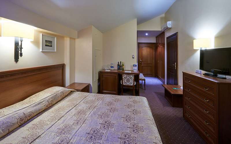A superior room filled with Empire furniture. Very popular with hotel guests. The design and interior elements recreate the romantic atmosphere of the boudoir of a 19th century noble estate. The room has a king size double bed. Everything here is thought out so that your holiday in Zavidovo will become a pleasant memorable experience.