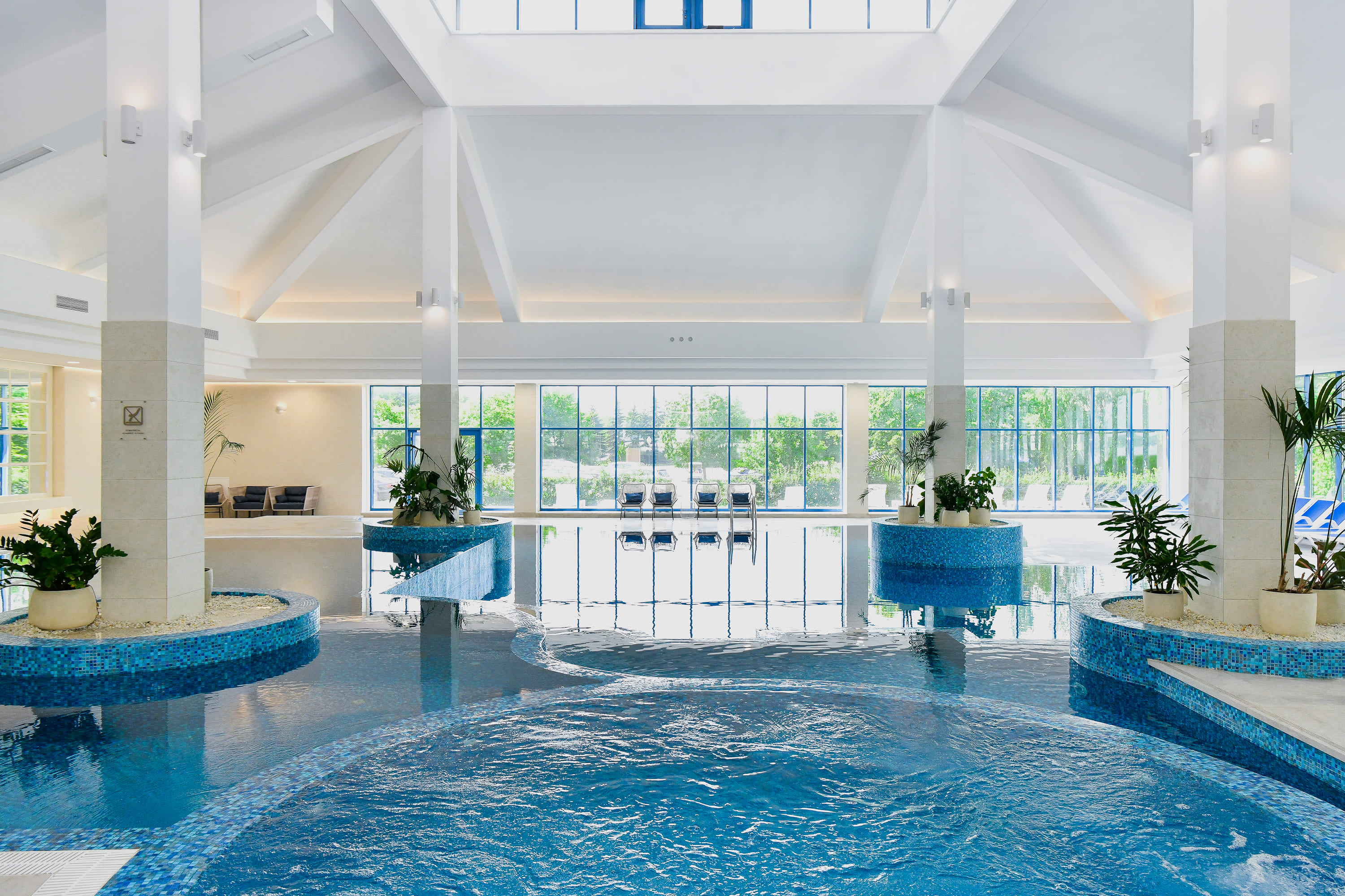 Тропический бассейн – особо любим гостями «Завидово». Пальмы и другие экзотические растения на островках среди воды, искусственные водопады, шезлонги – все здесь способствует приятному отдыху и релаксации. Бассейн состоит из 4 чаш разной глубины: от 60 сантиметров в детской зоне, до 1,5-2,5 метров – для любителей плавать и нырять.